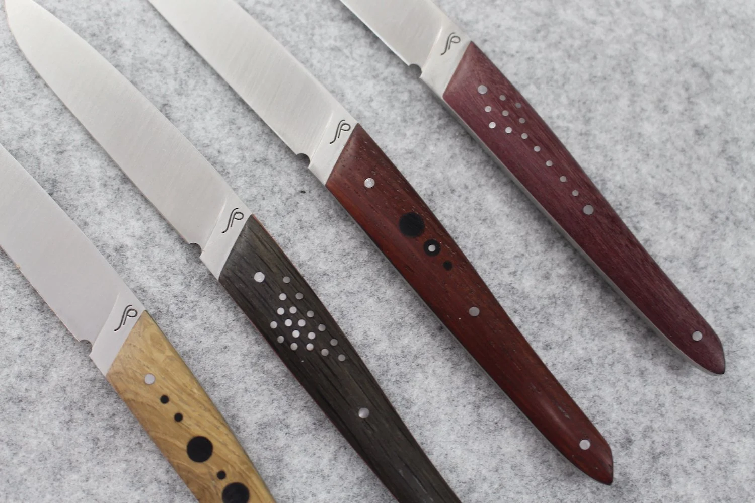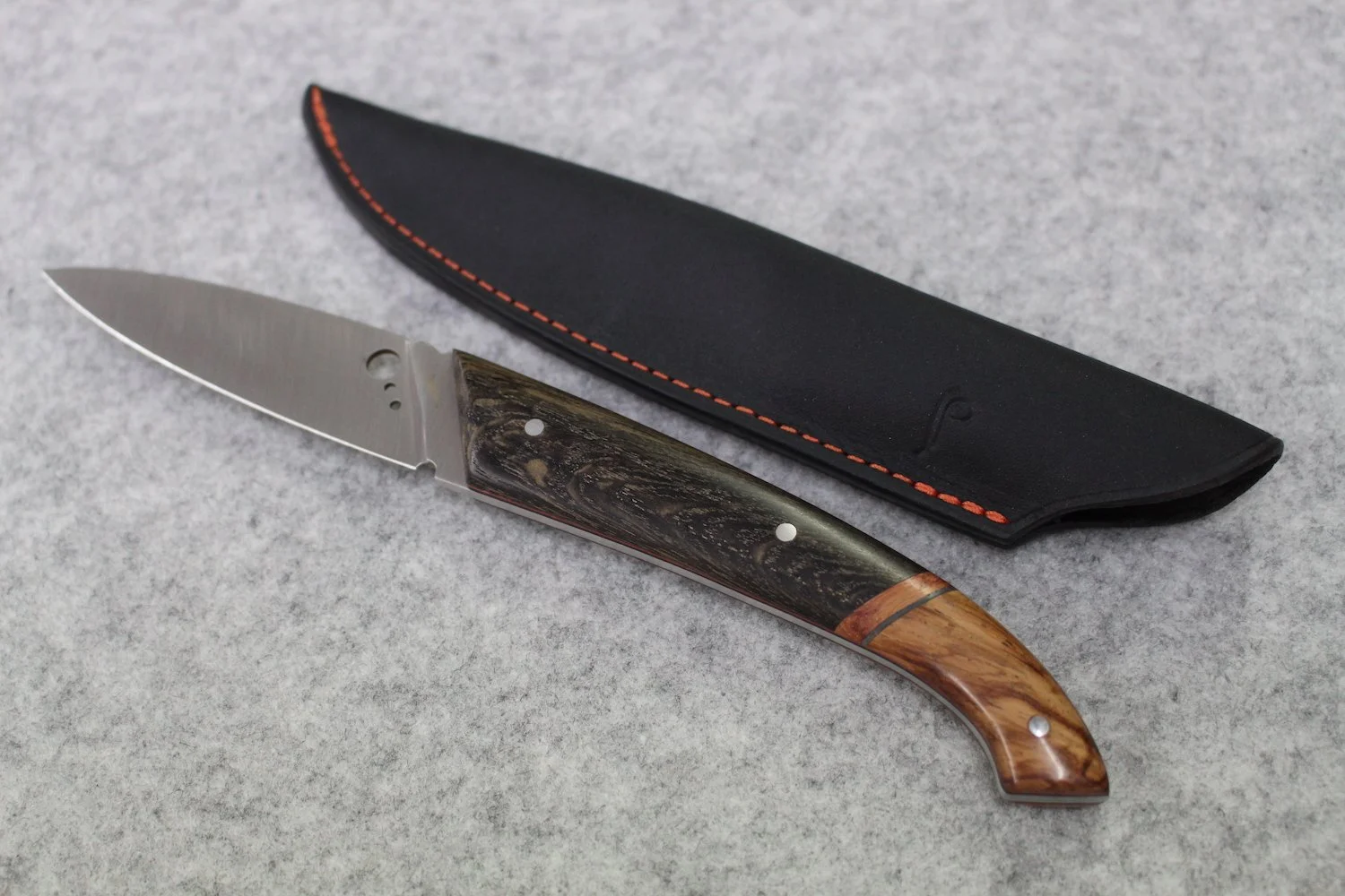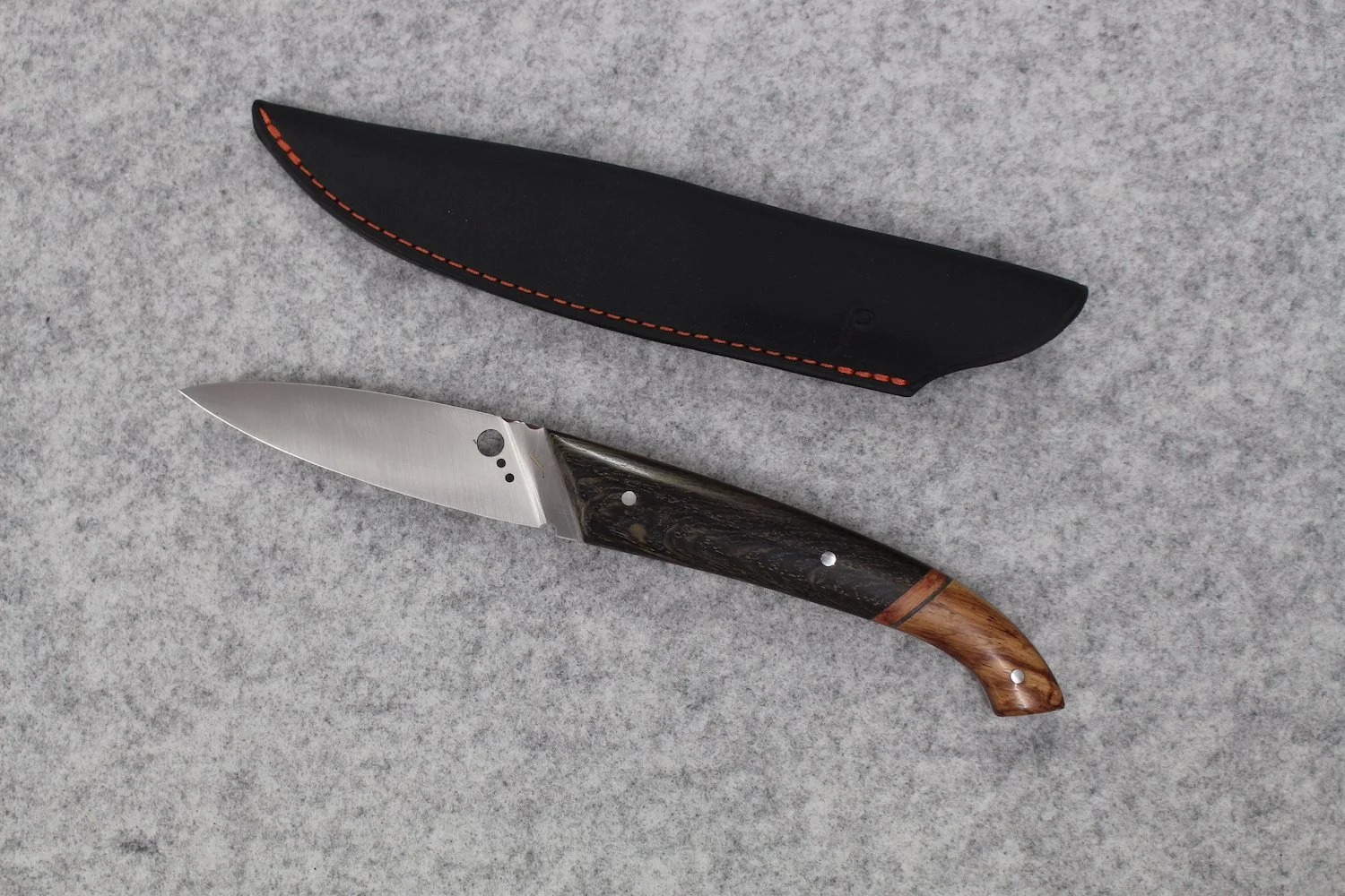 Stainless steel 14C28 - Rio palissandre, padauk wood, heated beech