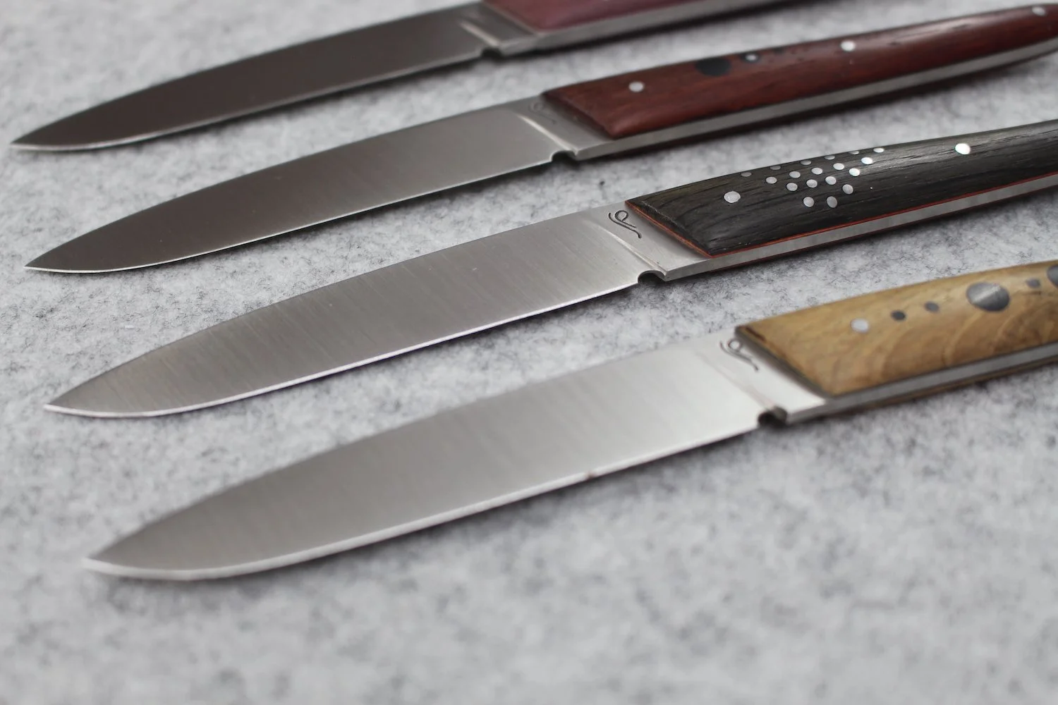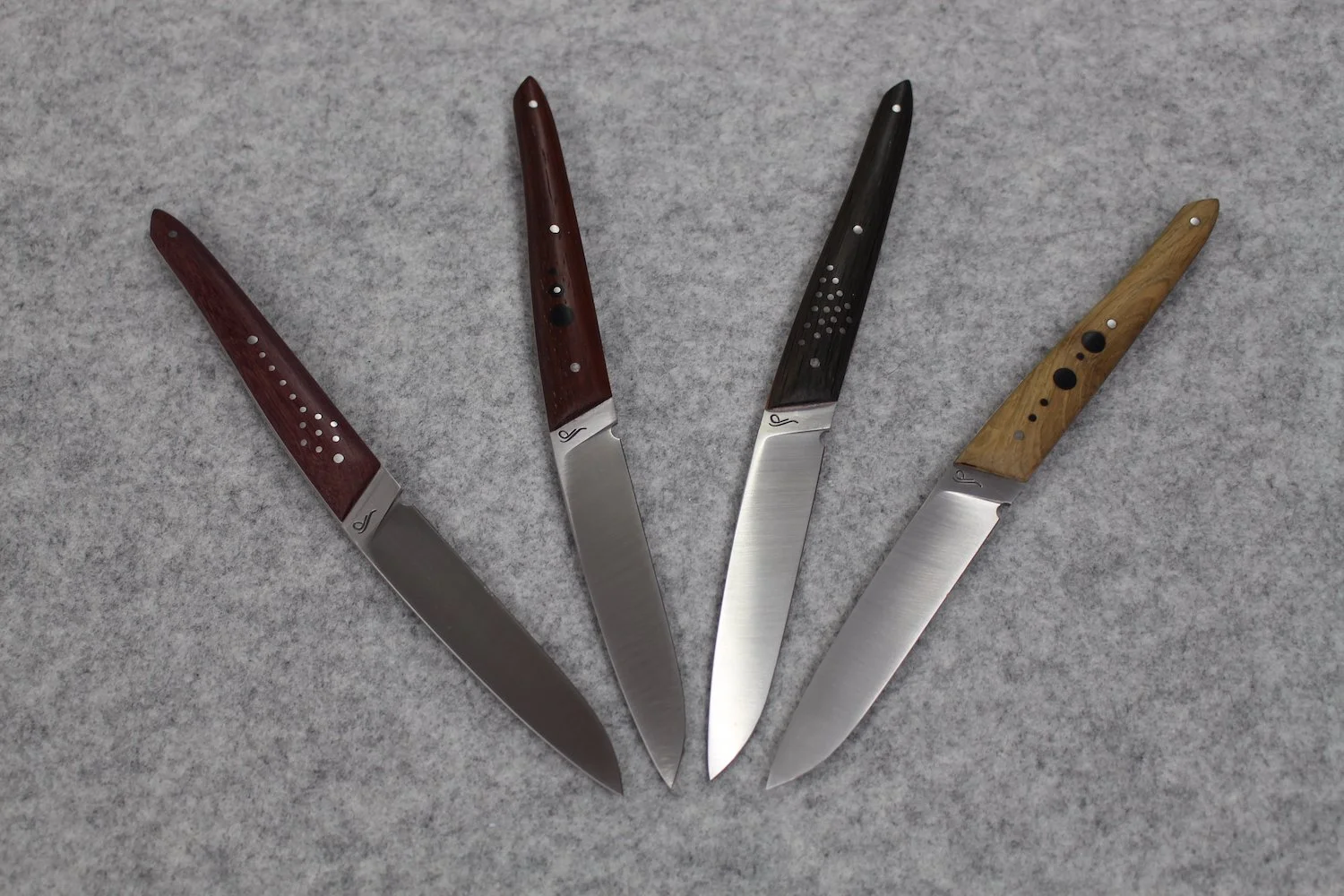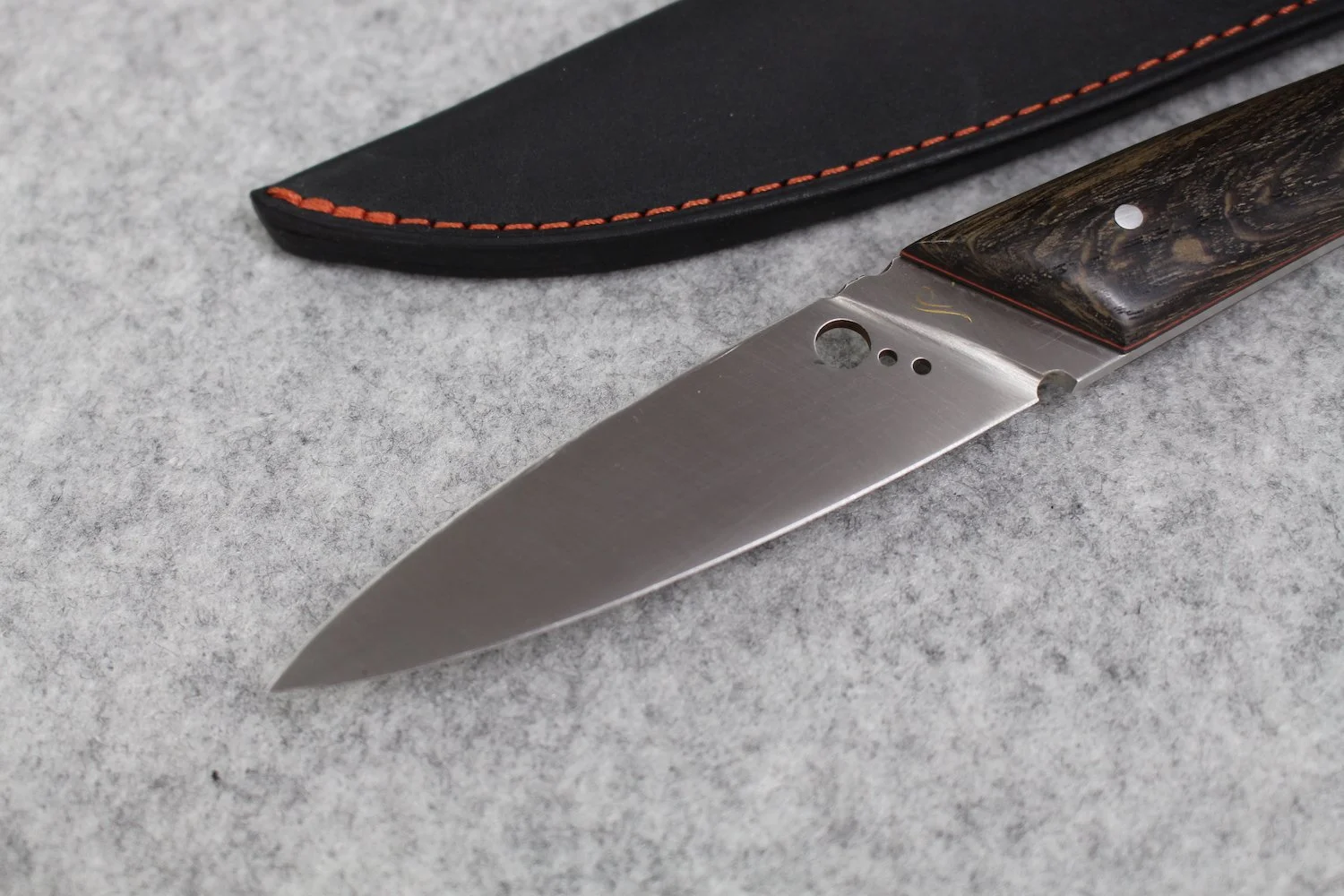 Stainless steel 14C28 - Rio palissandre, padauk wood, heated beech